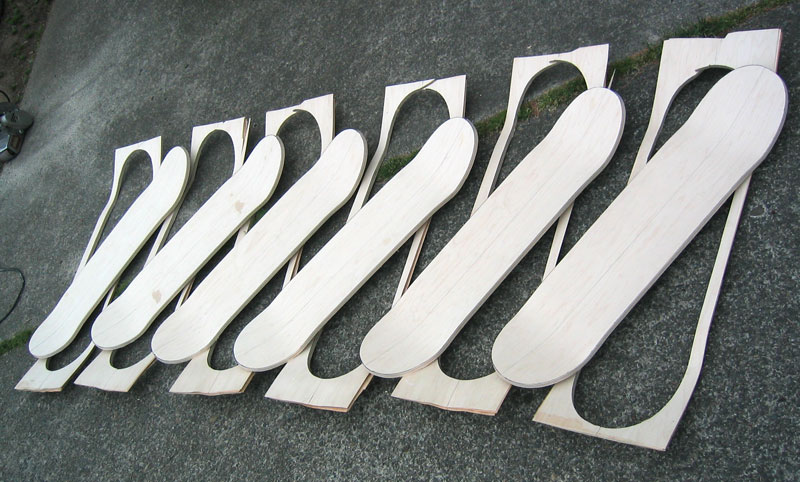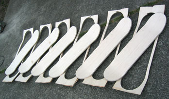 Here's pictures of a completed 45" pintail, and some trick boards in just after cutting (before sanding & finishing)